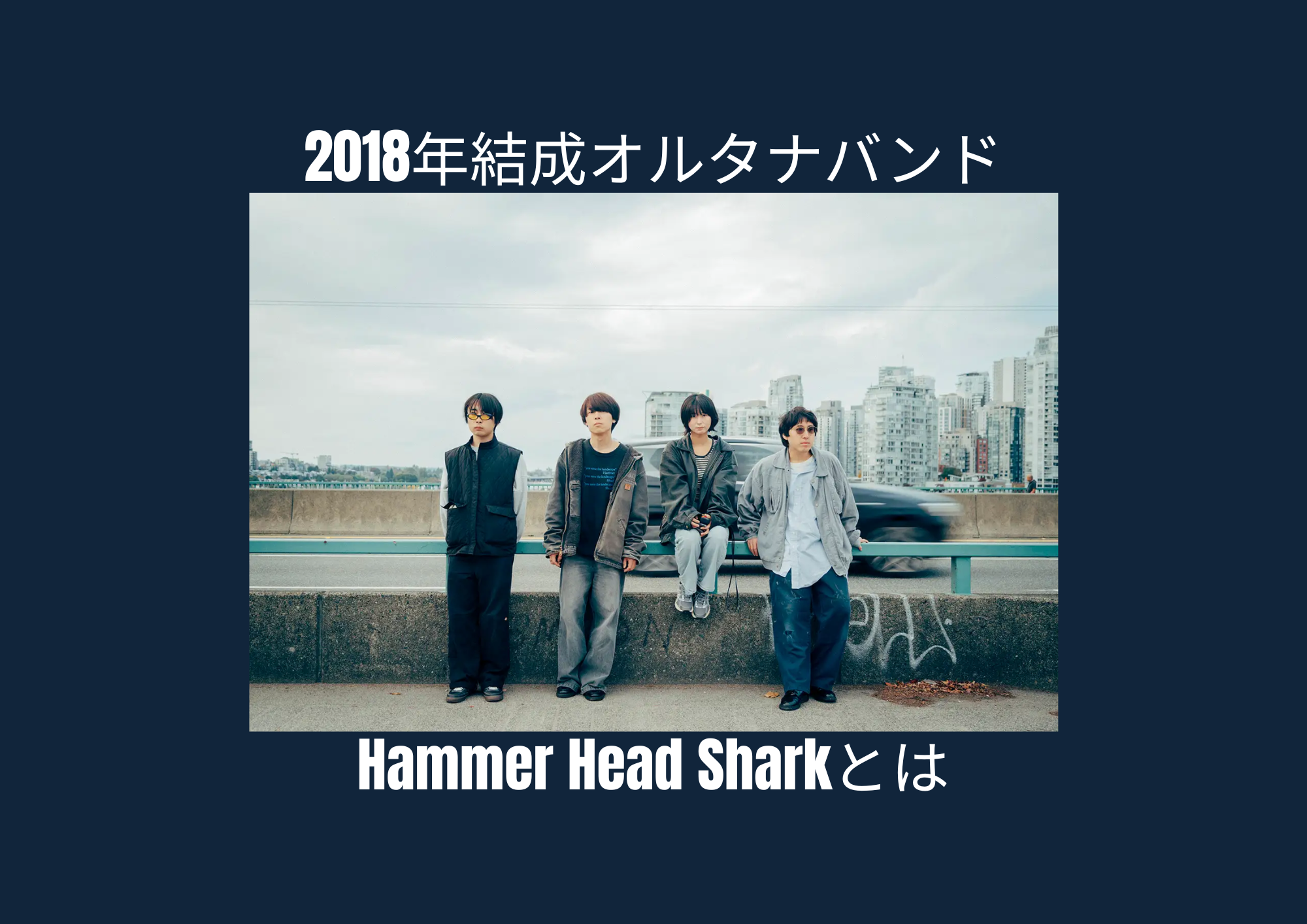2018年末に結成されたバンド『Hammer Head Shark』。メンバーはVo.Gt.ながいひゆ、Dr.福間晴彦、Ba.後藤旭、Gt.藤本栄太の四人。