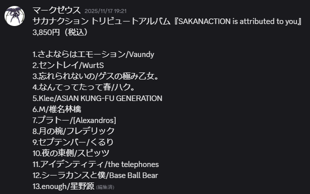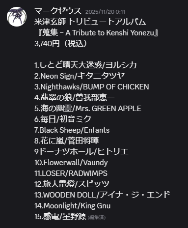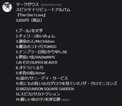 いかがでしたか?みなさんもあらゆるアーティストのトリビュートアルバムを節操なく妄想していきましょう!それでは!